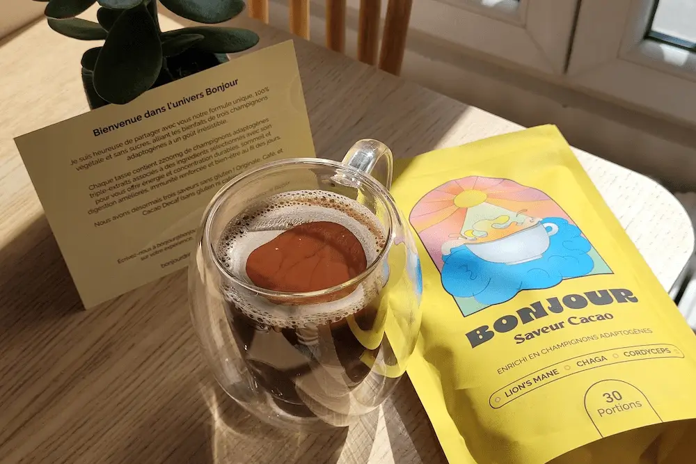 Les extraits de champignons Lion's Mane, Cordyceps et Chaga sont déjà biologiques dans toutes les formules Bonjour Drink, garantissant que la base fonctionnelle de la boisson respecte les standards bio. Les céréales torréfiées, présentes notamment dans la saveur Originale, font partie des ingrédients qui bénéficieront de la certification complète. Les extraits de café robusta décaféiné et de cacao, utilisés respectivement dans les saveurs Café et Chocolat Gourmand, sont également concernés par la démarche de certification globale. Information non précisée par la marque : le calendrier exact de finalisation de la certification Ecocert n'a pas été communiqué publiquement au-delà de la mention "courant 2025".